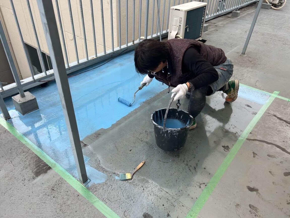 施工範囲を2ⅿ×2ⅿと決め、その後施工範囲にプライマーを塗りました。